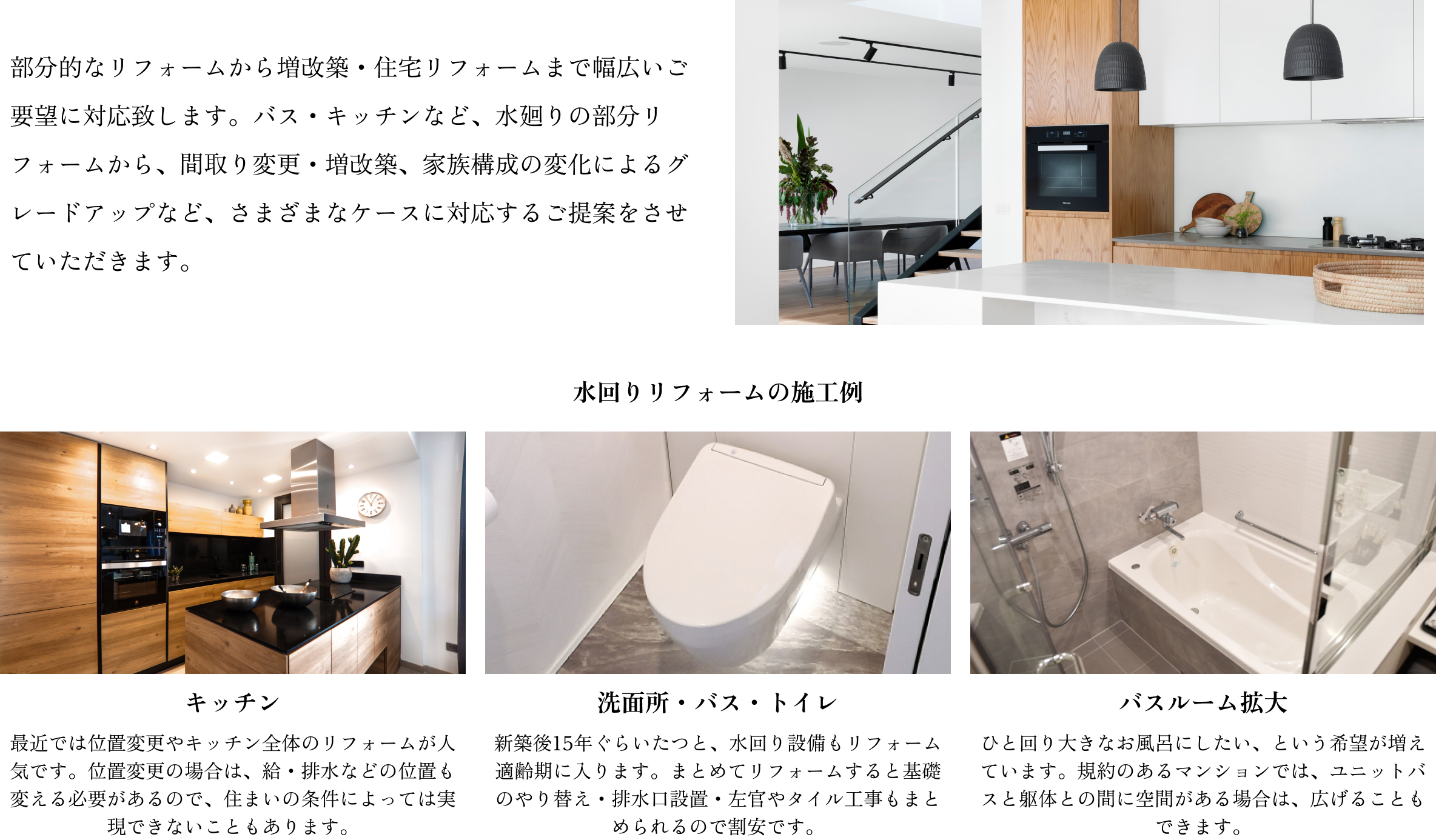 リフォーム・店舗工事には元住宅メーカー、ゼネコンのスタッフが在籍しており、