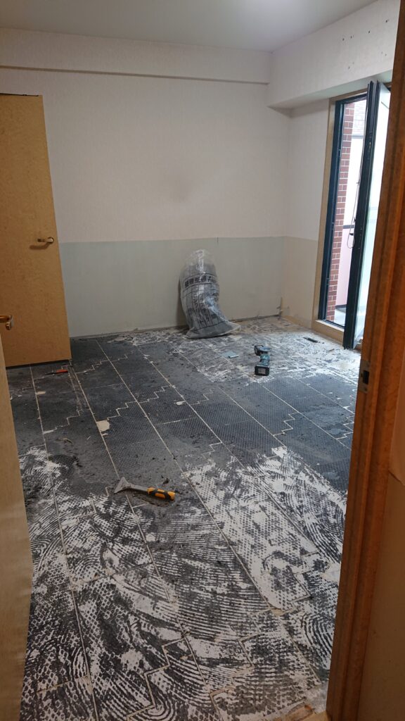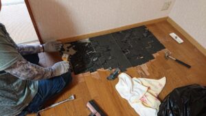 急なご依頼でしたが早く臭いだけでも消し、ご近所様にご遺族の方々が臭いの心配をしなくてもいいようにいつも特殊清掃の作業は早くするという事を心掛けております。亡くなられて1ヶ月程の孤独死現場でしたが、綺麗なマンションで密封されておりましたので、そこまで害虫の被害にはなっておりませんでした。お線香を特殊清掃中、絶やすことなく炊かせて頂きます。これは亡くなられた方に出来る私達の思いです。マンションのフローリングは下にクッションが付いておりボンドで張り付けてますので、体液がフローリングの木を突き抜け、下のクッションまで染み込んでおります。クッションを取るのは手作業です。このクッションが残っておりますと臭いの原因になりますので根気よく取ります。その後念入りに洗浄致します。また最後の現状復旧のリフォーム、ハウスクリーニングも請負させて頂きました。お亡くなりになられ悲しみの中、私達に出来ることはこれ以上ご自宅の事、ご近所様の事で心配なさらないように配慮し最後の最後まできっちりとお引き渡しすることだと思っております。ご安心出来るように日々努めて参ります。